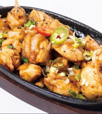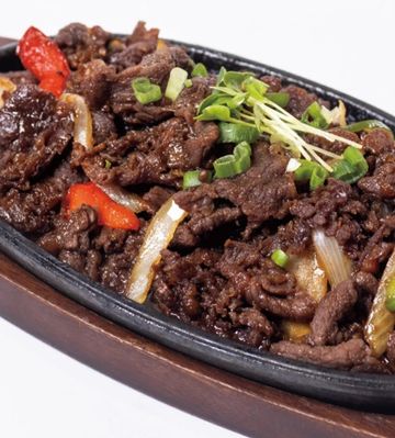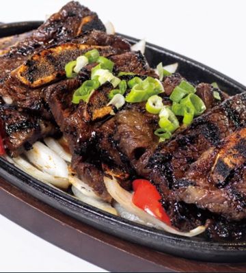Our BBQ dishes are served on a hot plate and come with a side of rice
