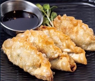 Traditional Korean fried dumplings with house soy sauce on the side (4 pieces)