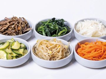 Zucchini, carrots, bean spourts, spinach, radish, bracken, bulgogi beef