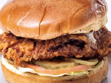 Brioche bun, fried chicken breast, lettuce, tomato, pickle, mayo, and sauce of your choice