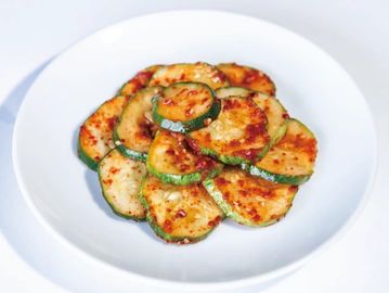 Crisp, chilled cucumbers with a sweet and spicy marinade
